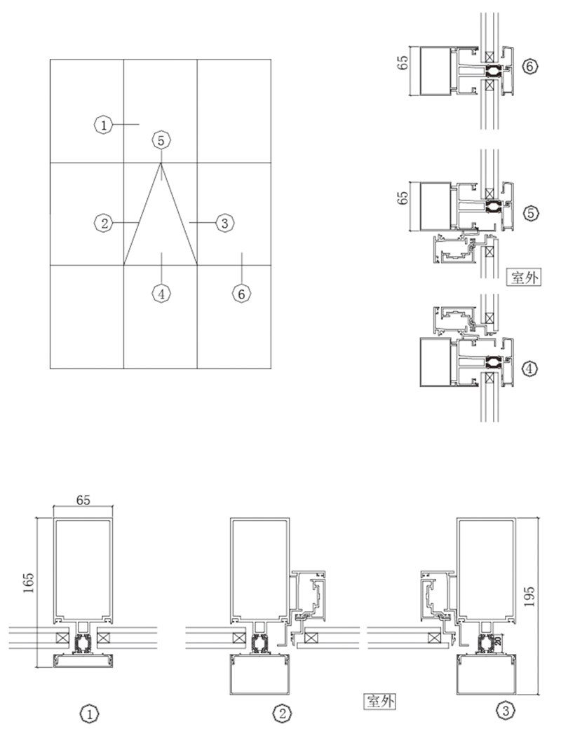 65係列隔(gé)熱中(zhōng)空玻(bō)璃幕牆結構圖